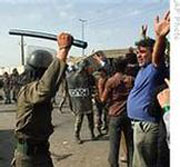 Iranian police dispersing demonstrators at the Behesht-e-Zahra cemetery in Tehran.