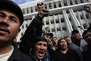 Protesters shout anti-government slogans as they gather in front of Kyrgyz government headquarters on the central square in Bishkek, Kyrgyzstan, 08 Apr 2010