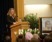 Burke, co-founder and director of the Project to End Human Trafficking, used examples of people she has worked with around the world, including a young girl from Haiti who was sexually exploited. She ended her presentation with a video about slavery.