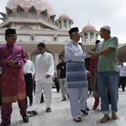 Malaysia's Prime Minister Najib Razak (2nd R) meets people after Friday prayers at the Putra Mosque in Putrajaya outside Kuala Lumpur, 10 Jul 2010