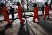Human rights activists converged in front of the White House to protest against the opening of the US prison camp at Guantanamo Bay nine years ago.