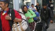 Romanian Roma people carry luggage after they and more than 200 others arrived on two special flights from France, in Bucharest, Romania, Tuesday, Sept. 14, 2010.