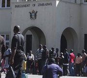 One law for some ... Zanu PF supporters outside Parliament last Saturday
