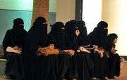 Saudi women wait for their drivers outside a shopping mall in Riyadh on September 26, 2011 a day after King Abdullah granted women the right to vote and run in municipal elections, in a historic first for the ultra-conservative country where women are subjected to many restrictions.