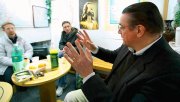 Peters also relates how a group of North Korean defectors trying to flee China in 2007 was held by Lao border guards demanding a bribe. Peters says that when he heard of the defectors' plight, he was having dinner with then-South Korean Trade Minister Kim Hyun-chong, a visitor to this night's Catacombs meeting.