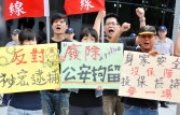 Taipei is currently under pressure to help one of its nationals who has been detained on the mainland since June , according to Taiwan’s state media. The man is a member of the Falun Gong, a spiritual group banned in China. Supporters of him and others detained by Chinese authorities held protests outside the building where the agreement was signed (pictured).