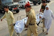 In this handout photograph released by the Pakistan's Inter Services Public Relations (ISPR) office on October 9, 2012, Pakistani soldiers carry injured Malala Yousafazai, 14, at an army hospital following an attack by gunmen in Peshawar on October 9, 2012.