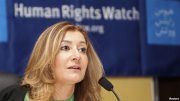 Human Rights Watch (HRW) Middle East director Sarah Leah Whitson, talks during a news conference in Doha June 12, 2012. REUTERS/Stringer (QATAR - Tags: SOCIETY POLITICS)