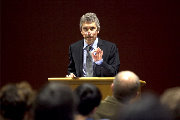 Graeme Reid, director of the LGBT Rights Program at Human Rights Watch, speaks about LGBT rights and perceptions around the world during his talk in the Hall of Languages on Monday night.
