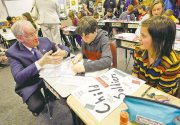 "You're going to be changing the world," he told a classroom of 11- and 12-year-olds.