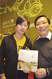 「下一站.人權」9日在高市舉行新書發表會 ,作者之一的閃靈樂團主唱林昶佐(左)肯定高市將人權落實生活的作為,右為該書主編高市立空中大學校長吳英明。