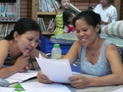新住民婦女們創作時彼此交換心得。 台灣國際家庭互助協會/提供