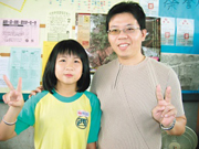 張鈞雅(左)影響全校師生更珍惜地球,受導師張翼丞(右)讚許。
