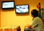 因此,面談等候室採用暖色系裝潢布置,消減受面談者緊張的情緒;螢幕透過「全多錄」系統,讓等候室內的旅客和民眾,可以同步看到面談室裡另一半接受面談實況,消除受面談者對面談過程的疑慮。
