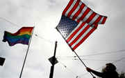 加州法官:軍中同性戀禁令違憲。圖為一名同性戀權益支持者揮動彩虹旗(gay pride flag)(AFP)