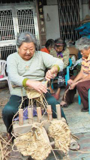 關廟埤頭社區的婆婆媽媽學做草鞋,要延續在地傳統手藝。