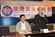 台灣法治促進會理事長張學海(右)與蘇相如(左)召開記者會,籲馬政府盡速與泰方簽定換囚協議。