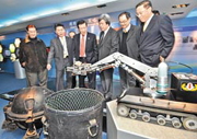 如虎添翼▲刑事局科技中心大樓16日落成,刑事局長林德華(左二)充當導覽員,為鑑識專家李昌鈺(左三)等來賓導覽、解說。(劉宗龍攝)