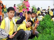 校長陳登祿說,今天學校將動員小學生在漚汪文衡殿前的市場,義賣採收的胡蘿蔔二千台斤,一台斤賣十元,估計有二萬元義賣所得捐作賑災款,教育學生懂得關心和助人,因善舉播下愛的種子。