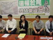 保障集會遊行人權 綠委促修法改成「報備制」 立法院內政委員會10日將審查《集會遊行法》修正草案,提案修法的民進黨籍立法委員鄭麗君9日表示,現行《集遊法》是威權時代遺留下來的惡法,她認為應該從許可制改為自願報備制,並應更名《「集會遊行保障法」以保障基本人權。 鄭麗君上午召開記者會,曾遭檢方以「集會遊行首謀」起訴的師大公領系主任林佳範、民間司法改革基金會律師高涌誠、台灣人權促進會會長賴中強、國際特赦組織台灣分會秘書長楊宗澧等人都應邀出席,發表對修改《集遊法》的看法。 林佳範以大甲媽祖遶境為例,認為警察角色在於維護民眾權益,但自己2008年在立法院門口要求《集遊法》修法卻遭警方蒐證,和平訴求的行動最後換來檢方起訴,可見《集遊法》當中存給予警方過大的行政裁量空間,應該予以修正。 鄭麗君則以自己當年在法國留學的經驗指出,當年她闖進中國駐法國使館抗議中國對台試射飛彈,結果法國警方只是把她帶走,簡單登記姓名跟地址就要請她喝咖啡,「我沒有得到拘役二十天役科罰金等等,也沒有被起訴」,可見同樣面對集會遊行,法國警方跟台灣警方的作法大不相同。 鄭麗君批評,集遊法是威權時代的產物,充滿著「治安重於人權」的價值,相關規範內容箝制人權、擴張政府權力,有必要進行修法。她也認為《集遊法》應該廢除現行「事前許可制」,改成「自願報備制」,以保障集會遊行的基本人權。 林佳範則呼籲,在相關修法沒有完成前,目前各法院中審理有關違反《集遊法》的案件,應該暫停審理。高涌誠則希望,《集遊法》相關修法能夠儘速通過。 (2012-05-10/ETtoday)