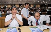 內政部長李鴻源(前左)、環保署長沈世宏(中)5日在台大集思會議中心,參加環保署舉辦的「全國氣候變遷會議」,與各界共商因應氣候變遷的短中長期政策。