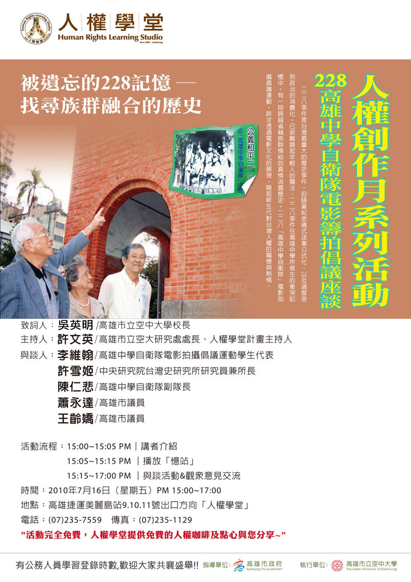 被遺忘的228族群融合故事—高雄中學自衛隊電影籌拍倡議座談