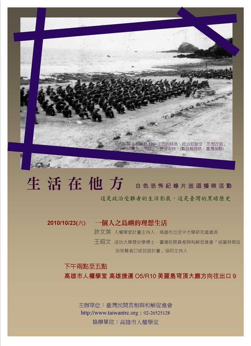 10/23:白色恐怖紀錄片巡迴播放活動--一個人之島嶼的理想生活 |