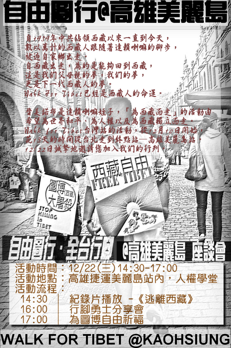 12/22:自由圖行─Walk for Tibet @高雄美麗島 座談會 |
