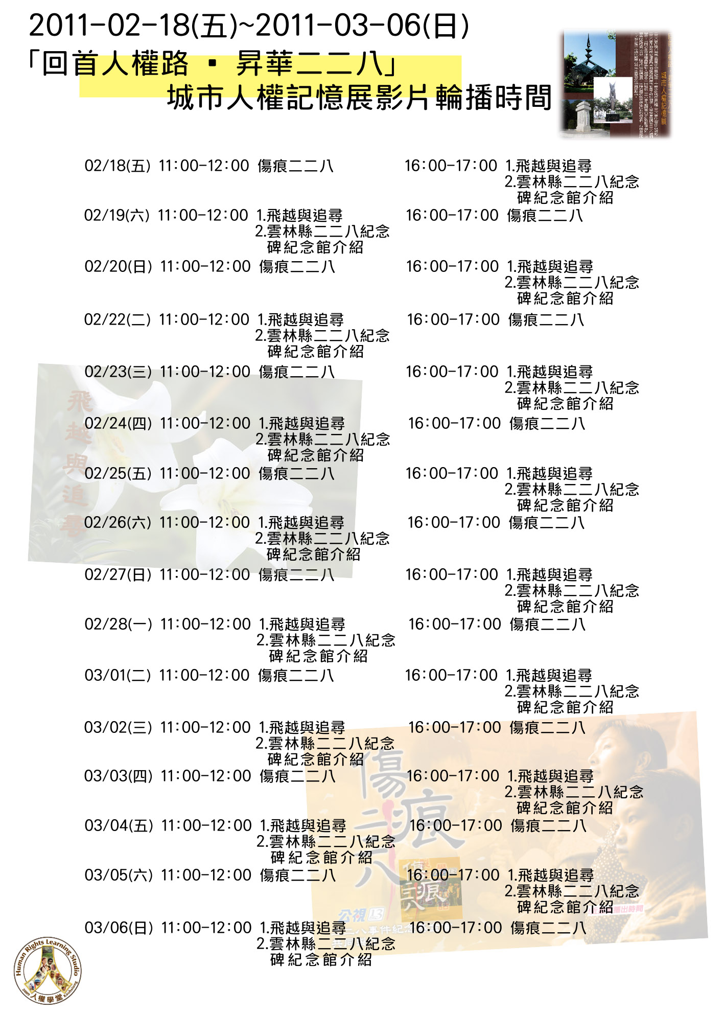 「回首人權路,昇華二二八」城市人權記憶展影像資料輪播時間
