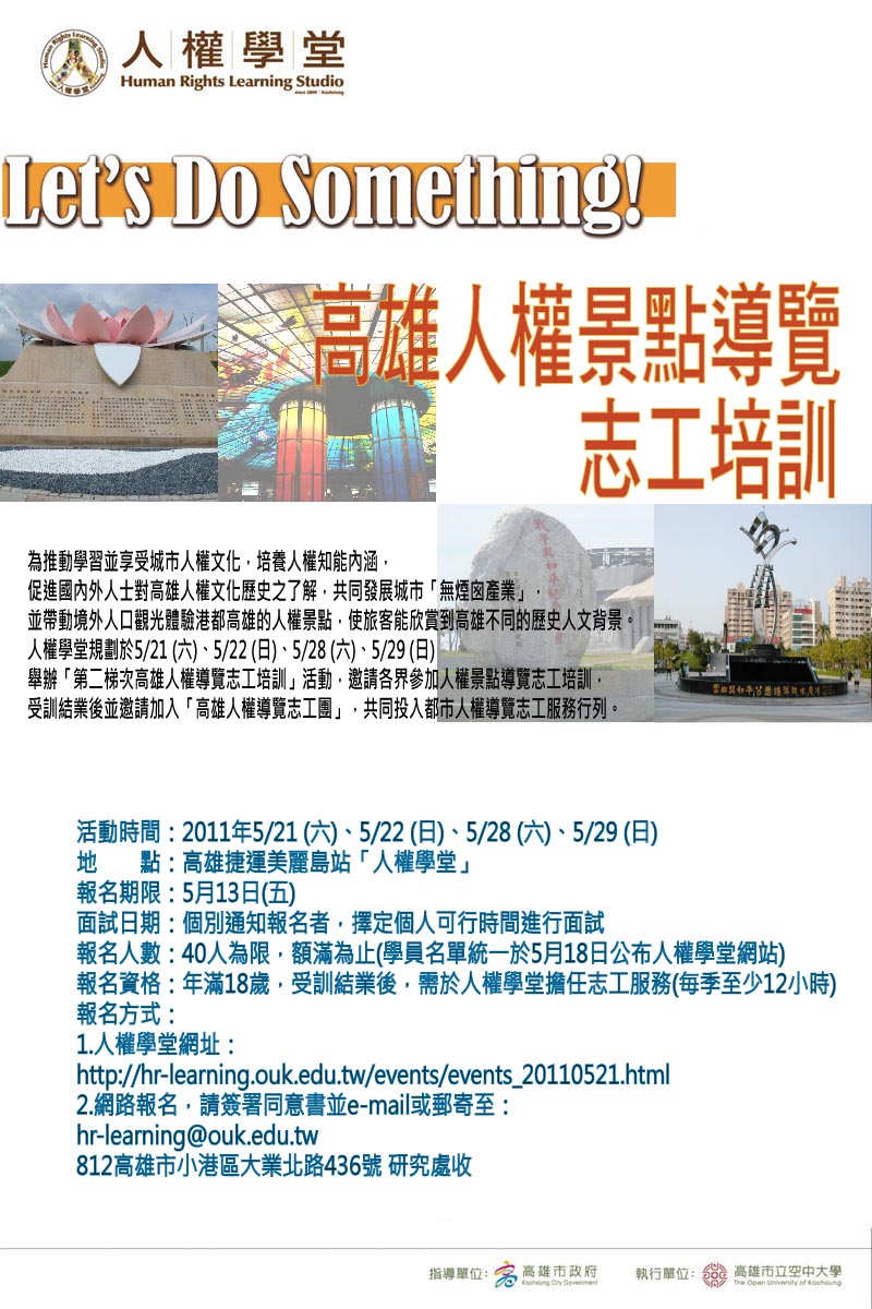 報名期限:即日起至5/13止(學員名單於5/18公布人權學堂網站)