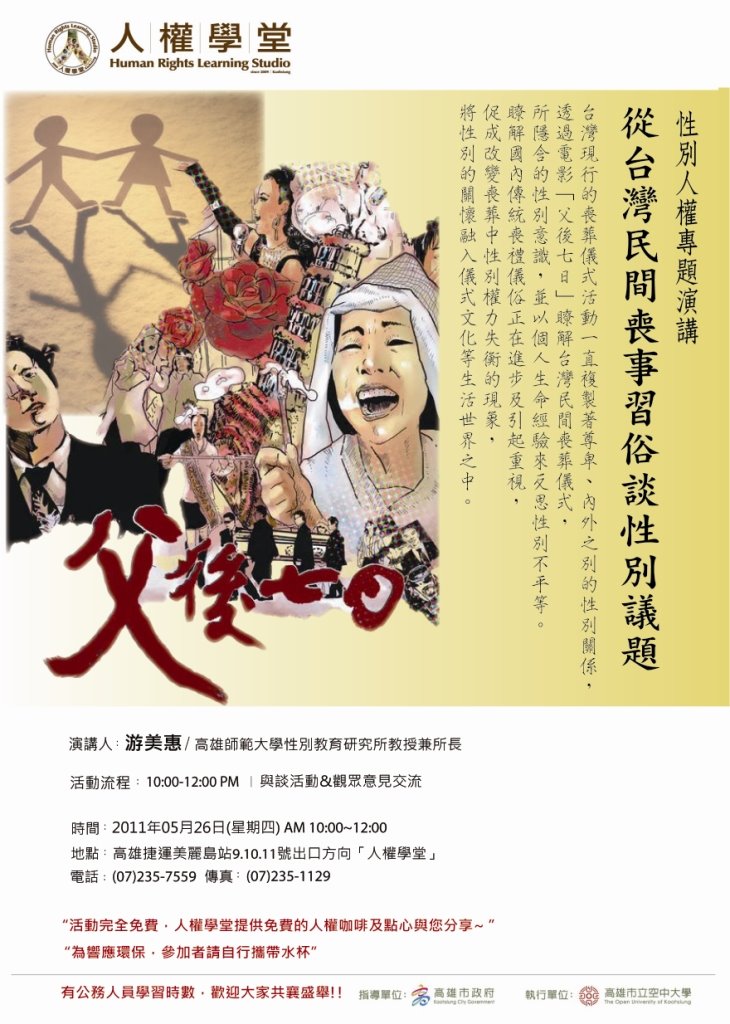 5/26:性別人權專題演講 《父後七日》—從台灣民間喪事習俗談性別議題 |