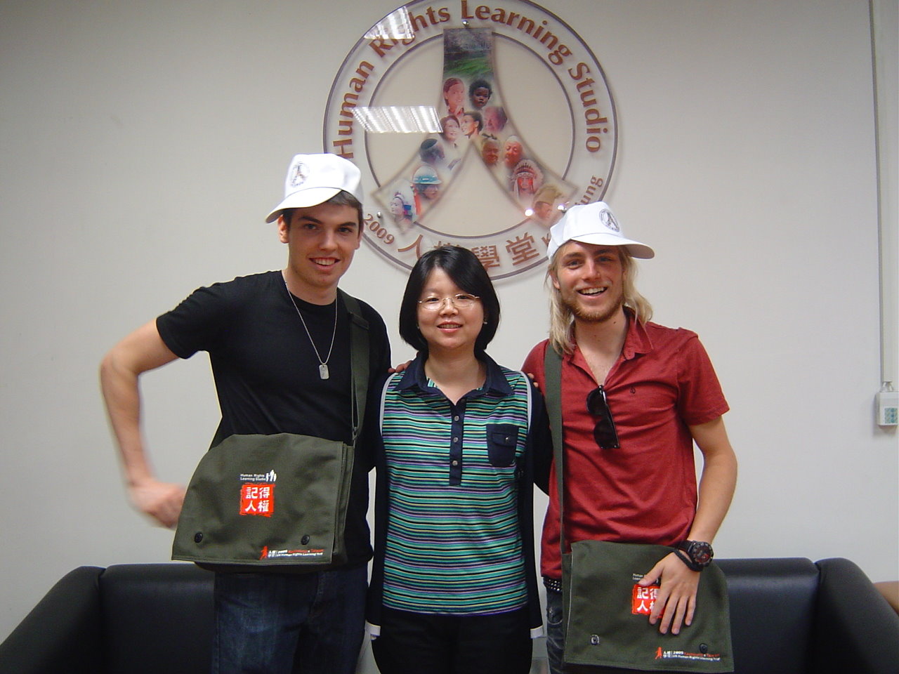 國際人權大使英國代表Niki Lanik(職業賽車手)與美國代表Dustin McGahee(創作歌手)於6/9 (星期四)下午參訪人權學堂,由高雄市立空中大學吳英明校長,及本學堂計畫主持人/高雄市立空中大學研究處許文英處長介紹人權學堂。