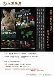 本片係由義大利外交部發起、為贊助「聯合國兒童基金會」與「世界糧食組織」所拍攝的電影。全片描寫了世界上許多不為人知的角落、那些被遺忘的小天使們的故事。這些孩子或者遭到不人道的剝削虐待,或者被迫作賊、靠拾荒維生……,甚至還有人被送上戰場,過著慘無人道的生活……。本次人權影片賞析映後座談探討下列相關議題,如:現今台灣社會面臨著什麼樣的兒童人權問題?造成兒童人權被剝奪侵犯的原因為何?我們又能如何幫助權益被剝奪的兒童,並進一步保障兒童人權?人權學堂邀請您共同來關心兒童人權議題。