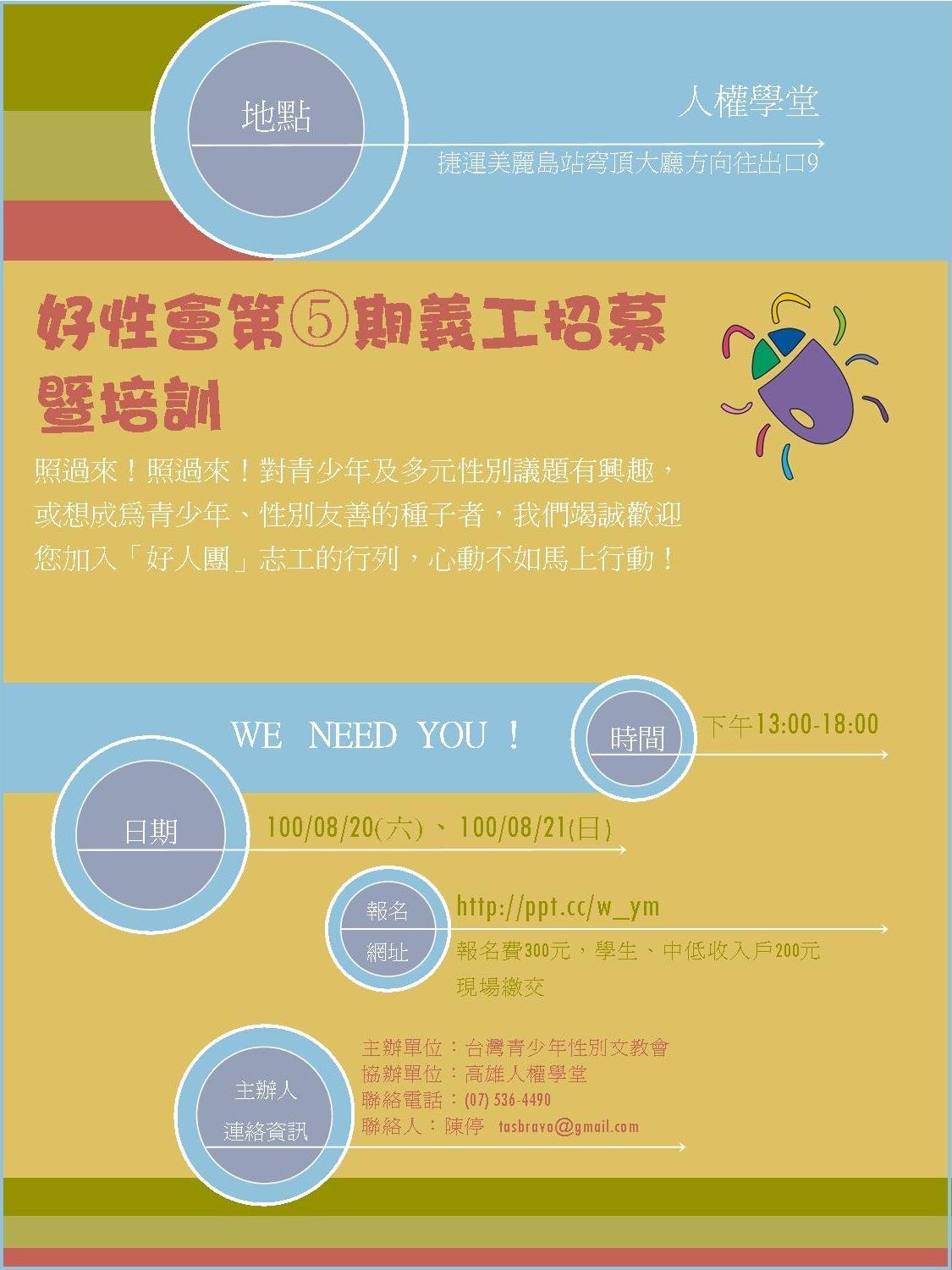 8/20-21:台灣青少年性別文教會第5期志工培訓 |