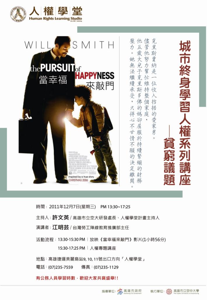 13:30-15:30 PM ∣ 影片賞析:當幸福來敲門(1小時56分)