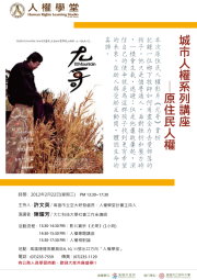 為鼓勵民眾將人權知識融入日常生活之中,人權學堂特地規劃「城市人權系列講座」,以平易方式讓民眾了解人權與民眾生活的密切性,讓城市居民樂於了解人權、學習人權、享受人權,活動透過人權影片觀賞並邀請不同人權領域的學者專家進行人權專題講座,以期人權教育能於城市居民心中紮根。