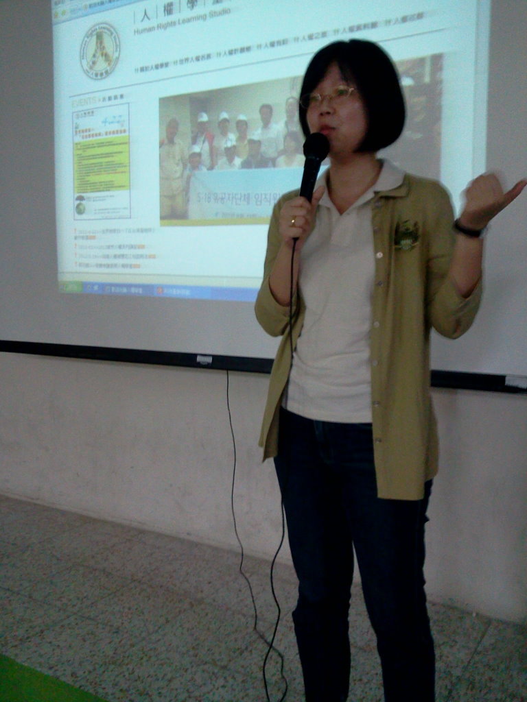 國立高雄師範大學人權巡迴講座 日期:101年4月13日 pm13:30~15:10 地點:國立高雄師範大學經學研究所 活動內容: 為鼓勵學生將人權知識融入日常生活之中,人權學堂特地規劃「人權學堂校園巡迴講座」,以平易方式讓學生了解人權與民眾生活的密切性, 由學堂計畫主持人/高雄市立空中大學研究處許文英處長介紹人權學堂。