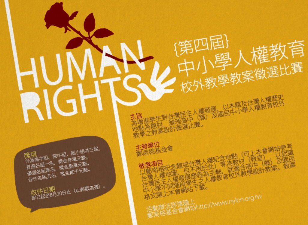 3樓鄭南榕基金會,信封請註明「第四屆人權教案徵選」。