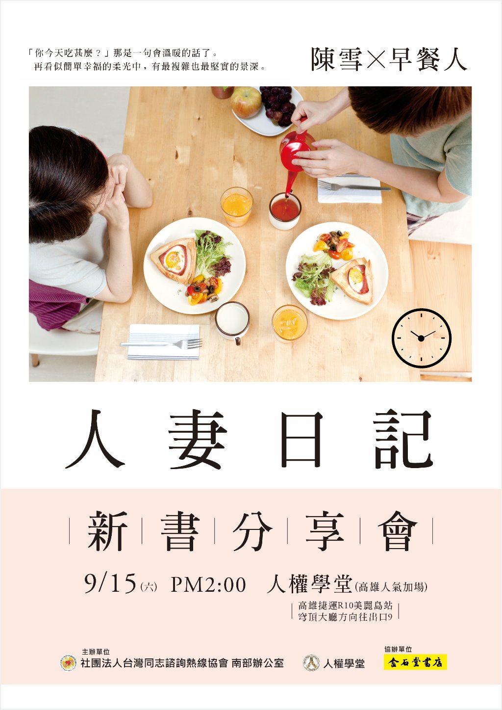 小說家走出故事,踏入了真實世界;心懷惶惑與過往傷痛的戀人們走出迷宮,來到現實生活的起點。長達二年的《人妻日記》,述說描摹著日復一日的淡遠悠,一個「家」的重建與創造,一段愛情的再生與細心滋養。「承擔彼此憂患」的誓言像是一句溫柔的咒語,縫補了時光裡的錯過、損傷,守護著未來的新生。以真實身分分享同志普通的婚姻生活,正是她們想傳達給外界的,一種龐大卻又簡單的意義。歡迎您來聽陳雪X早餐人的幸福旅程。
