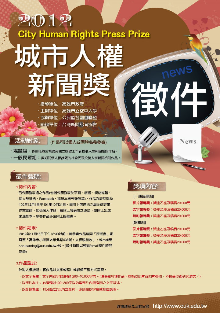 徵件時間:即日起至2012年11月16日下午6:30時止。