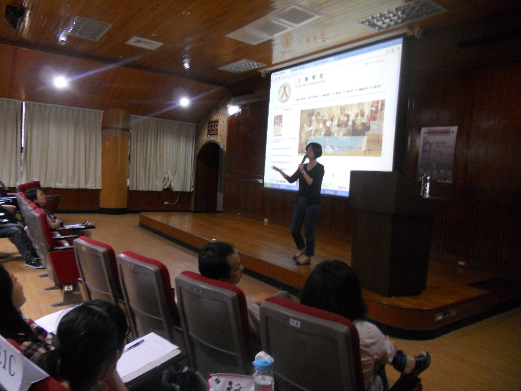 為鼓勵學生將人權知識融入日常生活之中,人權學堂特地規劃「人權學堂校園巡迴講座」,以平易方式讓學生了解人權與民眾生活的密切性, 由 由學堂計畫主持人/高雄市立空中大學研究處許文英處長進行人權教育宣導。